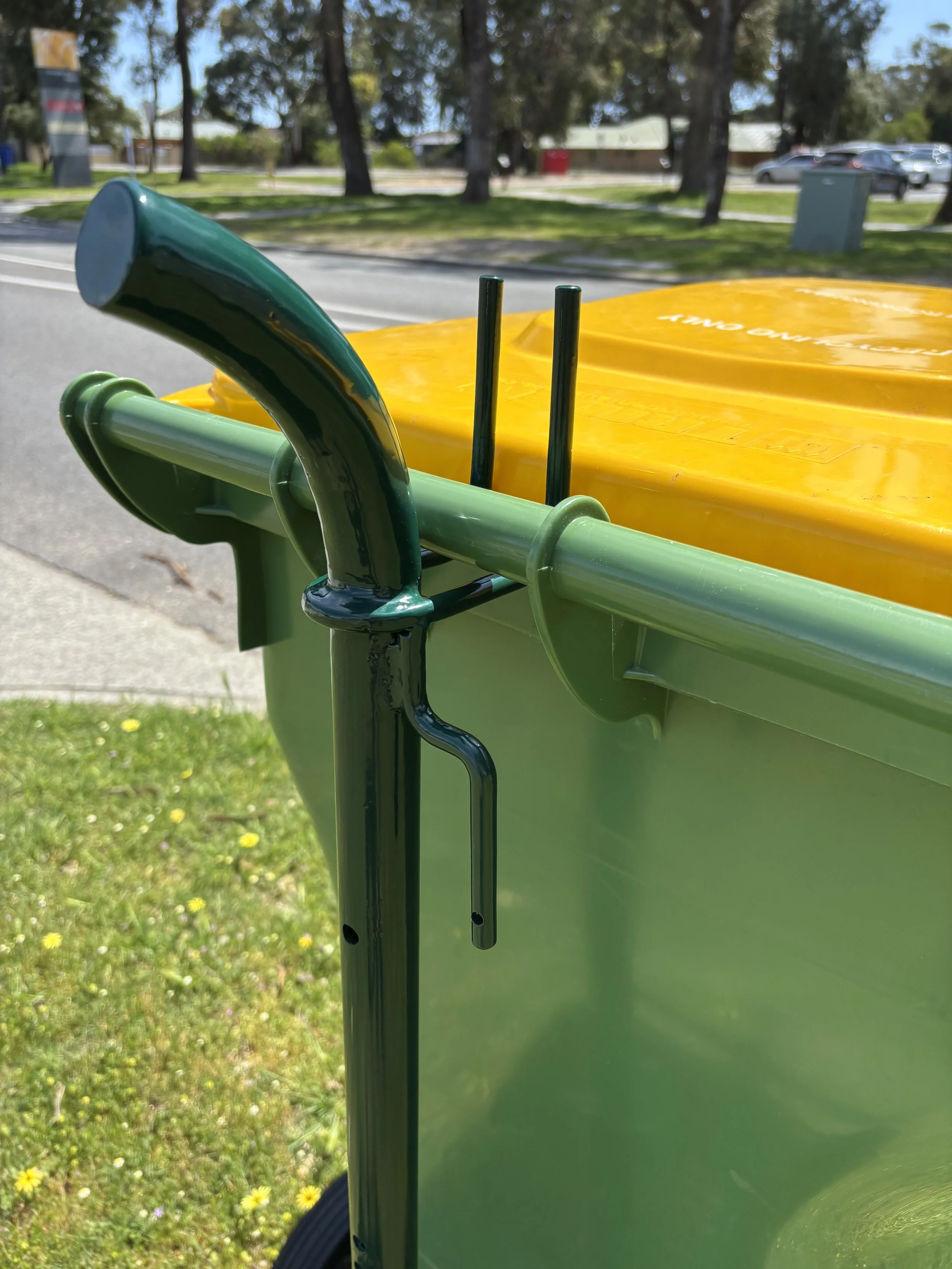 Adjustable height to suit all sizes of wheelie bins - e.g. 120L - 240L & 360L.